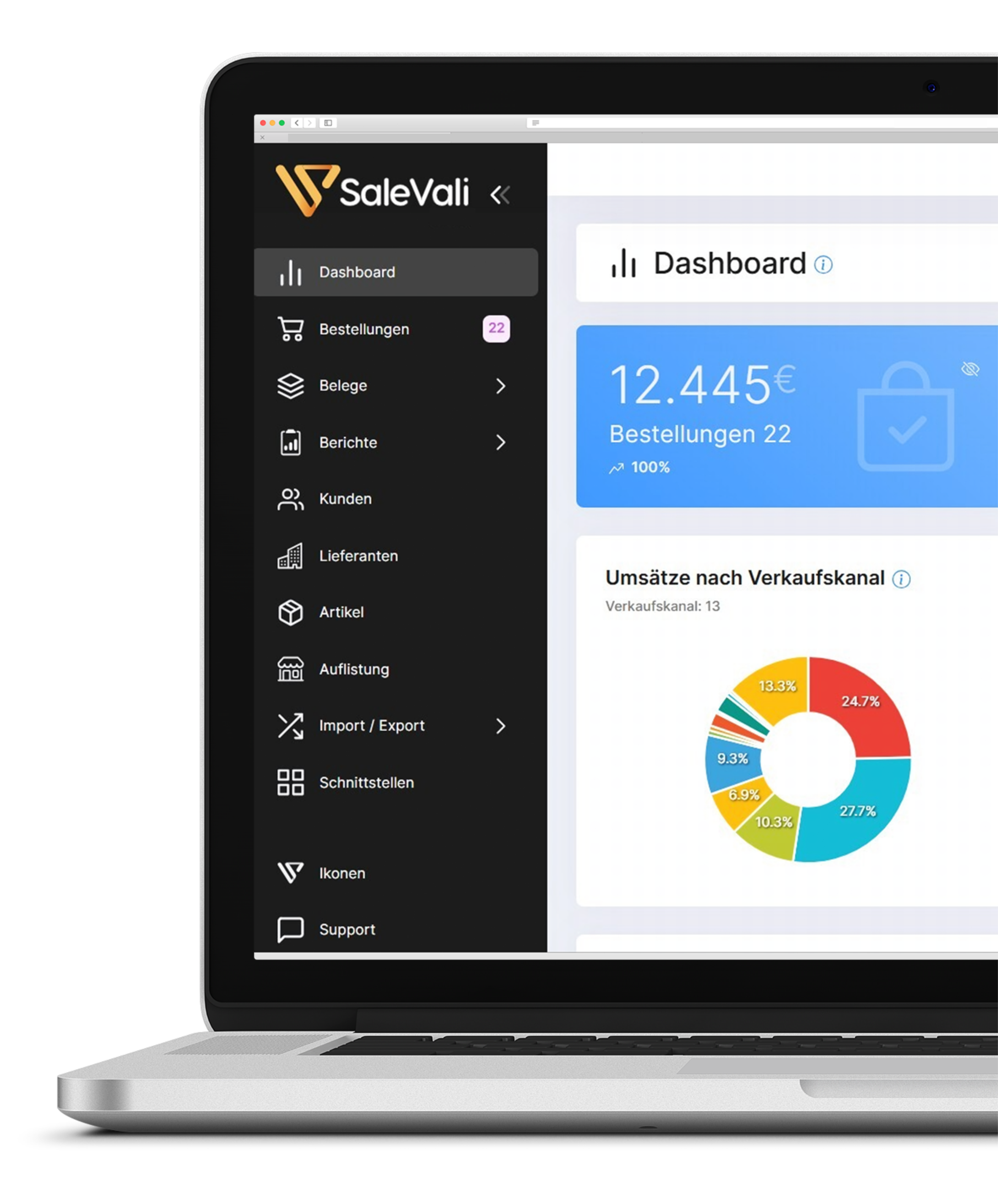 Mit SaleVali kannst du dein Geschäft effektiv skalieren und alle Prozesse automatisieren. Es ist speielend leicht einzurichten, einfach zu bedienen und bietet alle Funktionen die ein Multichannel-Händler benötigt.